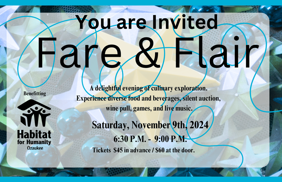 Plans are underway for Habitat for Humanity Fare & Flair 2025. We will be needing many helping hands for this fun fundraising event. You will see many different volunteer listings for this